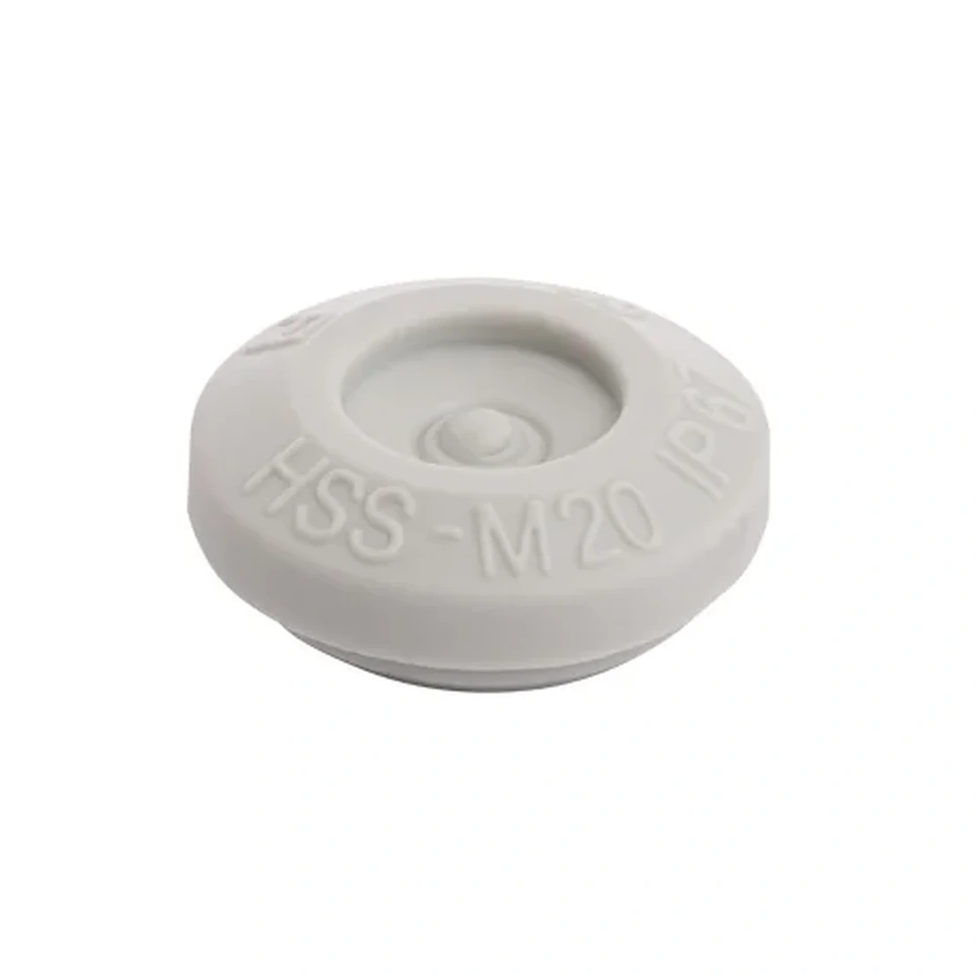 Dławica kablowa HSS-M20 w kolorze szarym przeznaczona do stosowania wewnątrz i na zewnątrz budynków w zakresie temperatur od -40 °C do +130 °C.