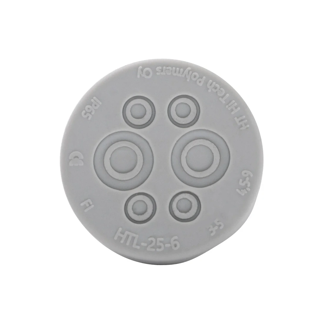 Dławica kablowa HTL-25-6 IP65 – szara służy do zabezpieczania i organizowania w systemach prowadzenia kabli. Jest dostępna w kolorze szarym i wykonana z wytrzymałego tworzywa sztucznego, elastomeru termoplastycznego TPE bezhalogenowego. Produkt charakteryzuje się wysoką odpornością na poziomie IP65. Przeznaczona jest do przewodów o średnicy od 3-5 mm 4 szt. / 4,5-9 mm 2 szt. Dławica jest odporna na temperatury w zakresie -40 +100 °C