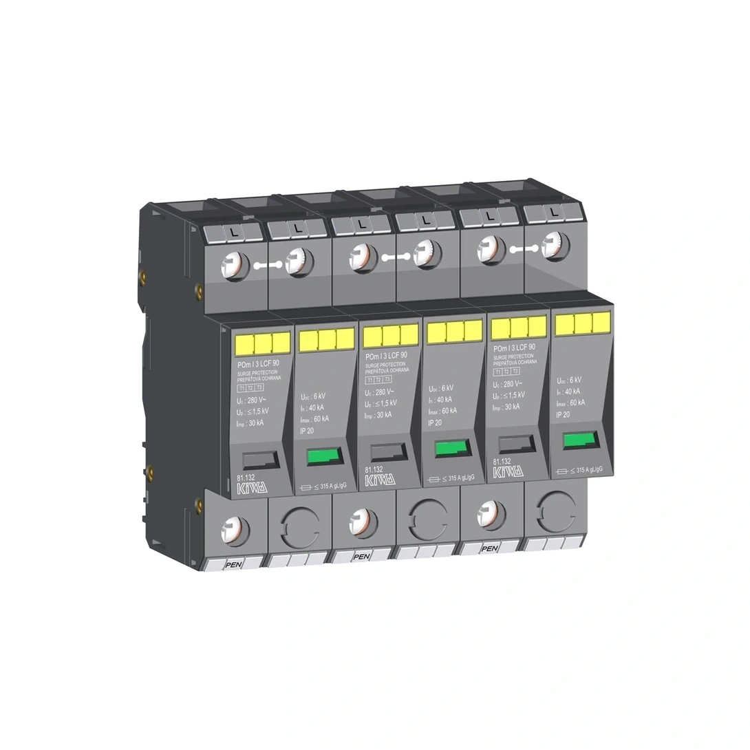 Ogranicznik przepięć POm I 3 LCF 90kA 280V/30kA 3P Typ 1+2 (warystor szeregowo z iskiernikiem ‑ brak prądu upływu) – monoblok