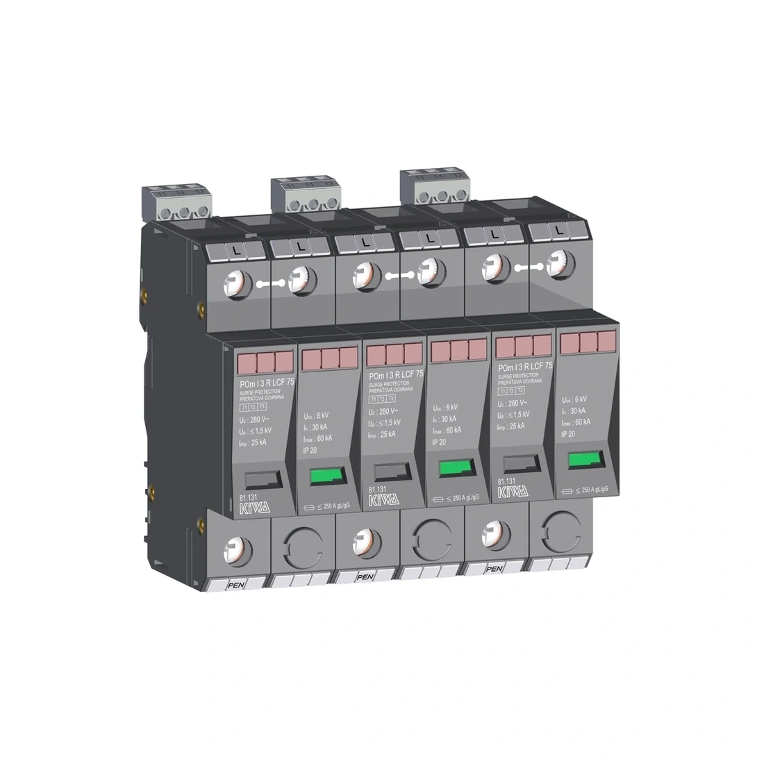 Ogranicznik przepięć POm I 3 R LCF 75kA 280V/25kA 3P Typ 1+2 (zdalna sygnalizacja stanu, warystor szeregowo z iskiernikiem ‑ brak prądu upływu) – monoblok