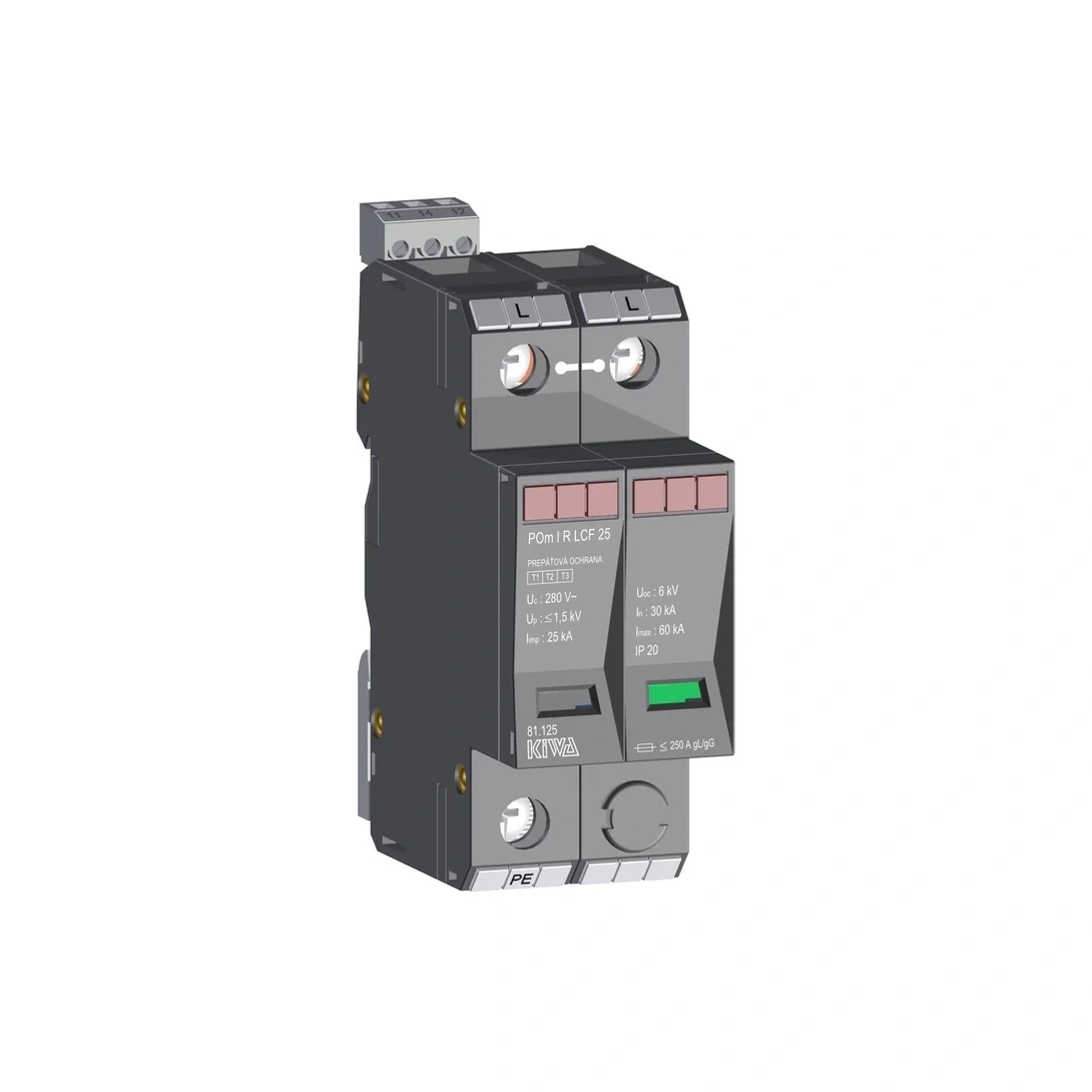 Ogranicznik przepięć POm I R LCF 25kA 280V/25kA 1P Typ 1+2 (zdalna sygnalizacja stanu, warystor szeregowo z iskiernikiem ‑ brak prądu upływu) – monoblok