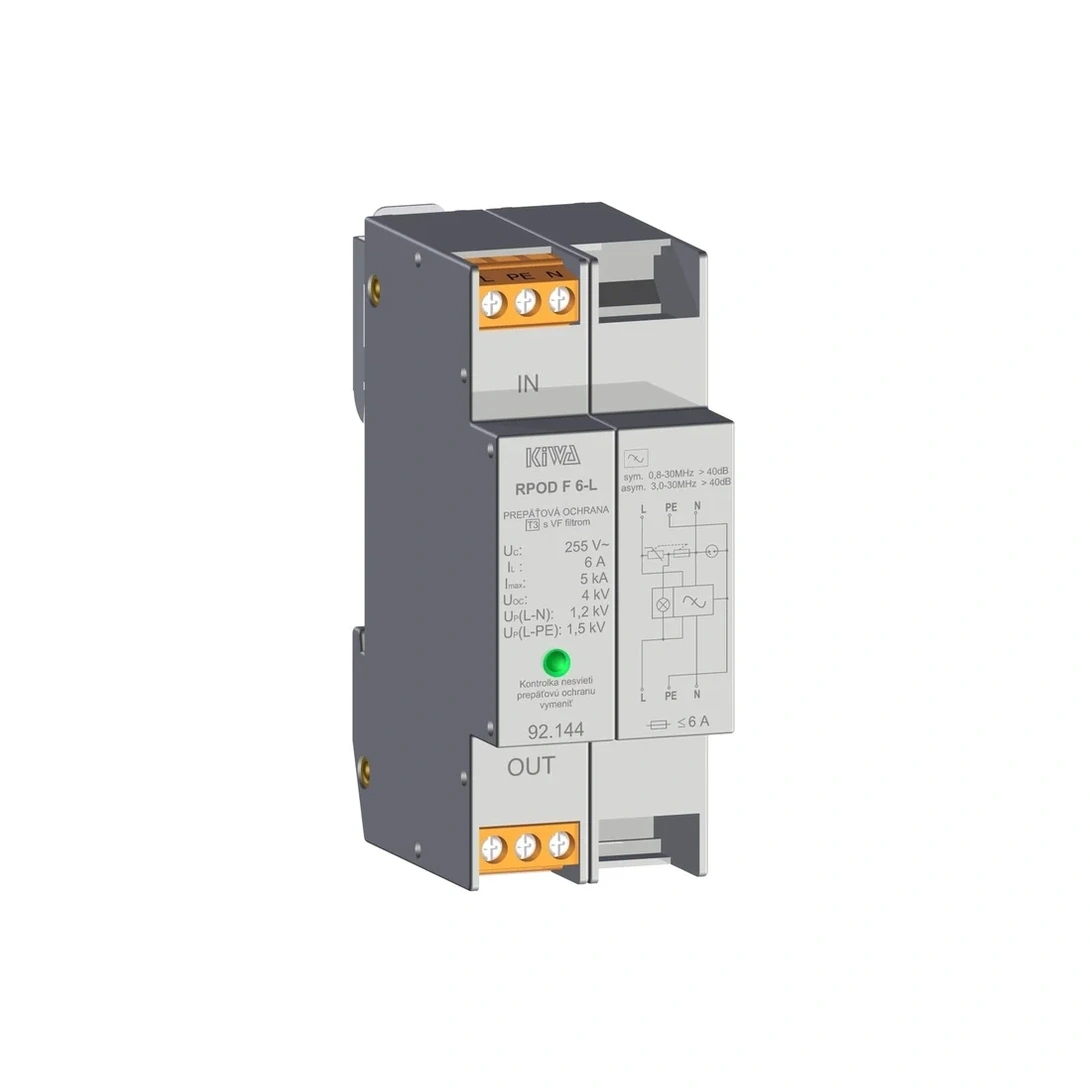 Ogranicznik przepięć RPOD F 6-L 1P Typ 3 1,2kV 230V (warystor zestawiony z iskiernikiem, filtr wyższych harmonicznych – ochrona przed wysoką częstotliwością)