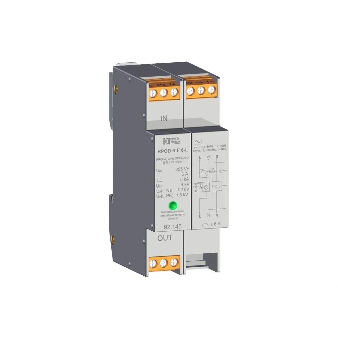 Ogranicznik przepięć RPOD R F 6-L 1P Typ 3 1,2kV 230V (zdalna sygnalizacja stanu, warystor zestawiony z iskiernikiem, filtr wyższych harmonicznych – ochrona przed wysoką częstotliwością)