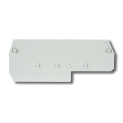 Płytka krańcowa dedykowana do złączek śrubowych EURO w kolorze szarym i klasie palności V2 to element izolacyjny wykonany z tworzywa sztucznego, który jest przeznaczony do zamykania końcowych otworów w zestawach złączek śrubowych.