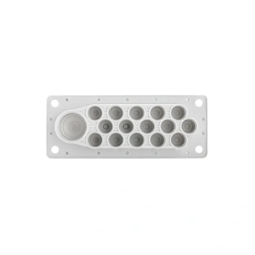 Przepust dławiący HTB-16 w kolorze szarym to specjalny przepust z tworzywa sztucznego z tłoczonym wzmocnieniem stalowym i wstępnie przygotowanymi przepustami kablowymi o kompaktowej konstrukcji.