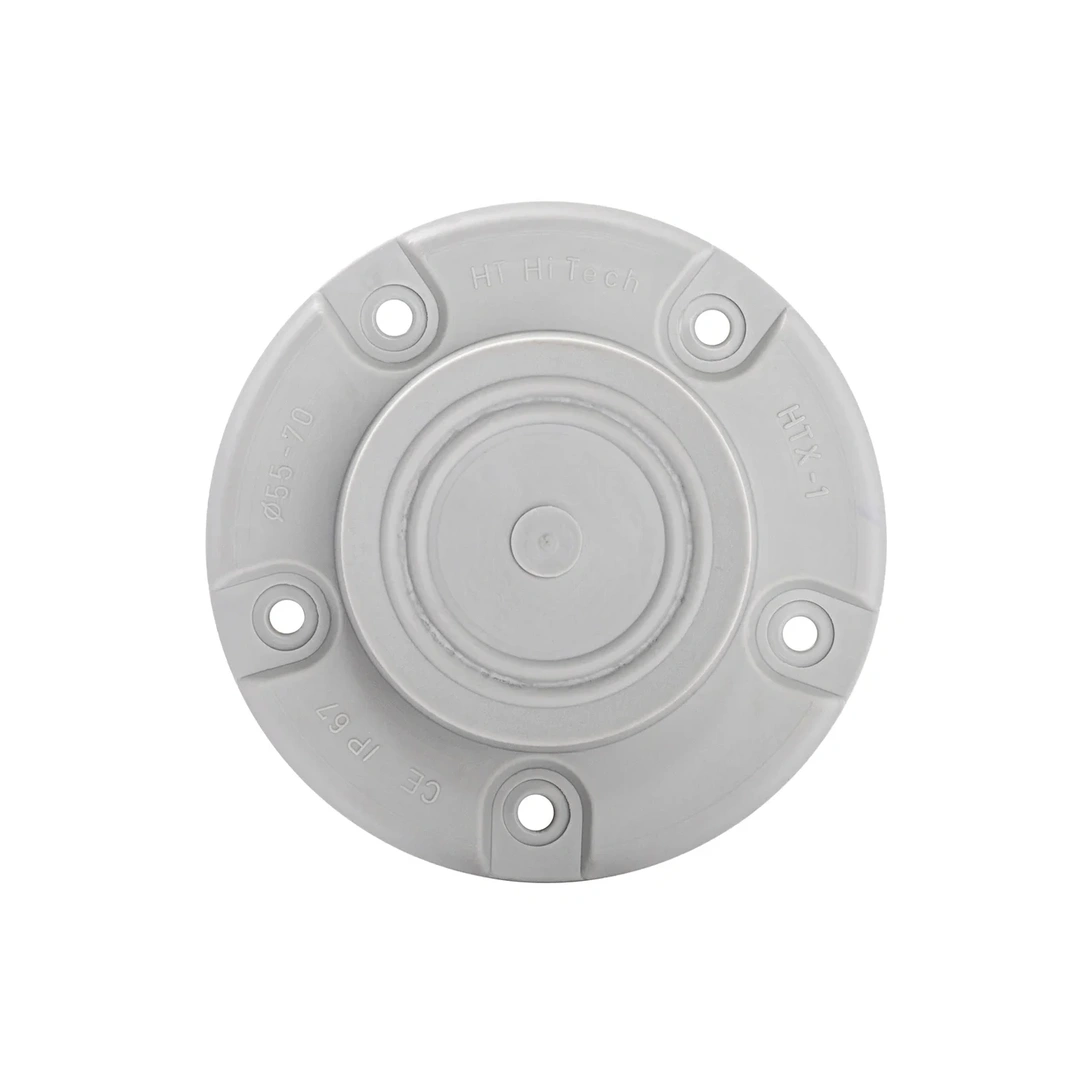 Przepust dławiący HTX-1 w kolorze szarym to specjalny przepust z tworzywa sztucznego z tłoczonym wzmocnieniem stalowym i wstępnie przygotowanymi przepustami kablowymi o kompaktowej konstrukcji.
