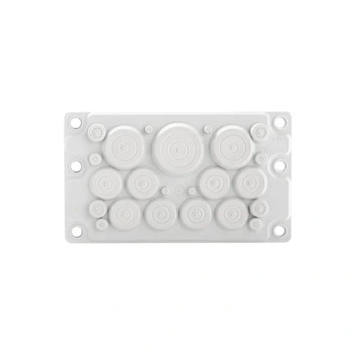 Przepust dławiący HTX-23 w kolorze szarym to specjalny przepust z tworzywa sztucznego z tłoczonym wzmocnieniem stalowym i wstępnie przygotowanymi przepustami kablowymi o kompaktowej konstrukcji.